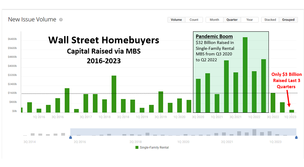 “Wall Street Homebuyers are running out of money. In Pandemic Boom they raised $32 Billion to fund home purchases. Last 3 quarters? Only $3 Billion. Very soon they will need to sell properties in order to fund new acquisitions. That's when things will get fun.” by Nick Gerli, CEO & Founder of Reventure Consulting (more details here)