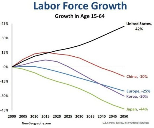 “While the assumptions behind the US labor force growth might be a bit optimistic, the widening gap between the US and Europe, China and Japan is likely to be pretty impressive.” by Alf, Founder & CEO of TheMacroCompass.com