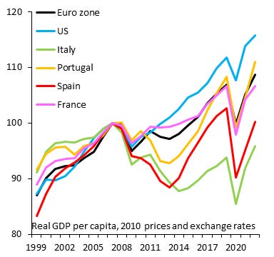 6. Italy (green): -4%” by Robin Brooks, Chief Economist at IIF